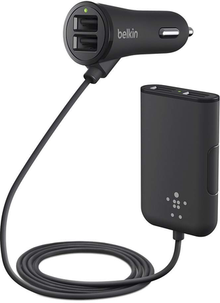 - Адаптер прикуривателя Belkin Road Rockstar 4. Это хороший гаджет, у которого есть четыре порта USB с силой тока до 2,4 А. Они позволяют заряжать смартфоны всех пассажиров авто. При желании можете подключить к ним планшет, экшен-камеру, батарею квадрокоптера и пр., чтобы ускорить подготовку к съёмке.