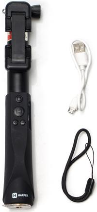 - Пульт управления монопода Harper RSB-304 позволяет делать снимок одним нажатием кнопки и регулировать зум. Никаких усилий на постобработку: можете выбрать оптимальный угол обзора прямо во время съёмки. Селфи-палка подключается к смартфону по Bluetooth, её аккумулятор рассчитан на 500 фотографий.